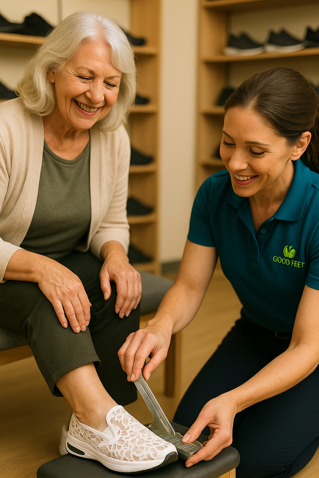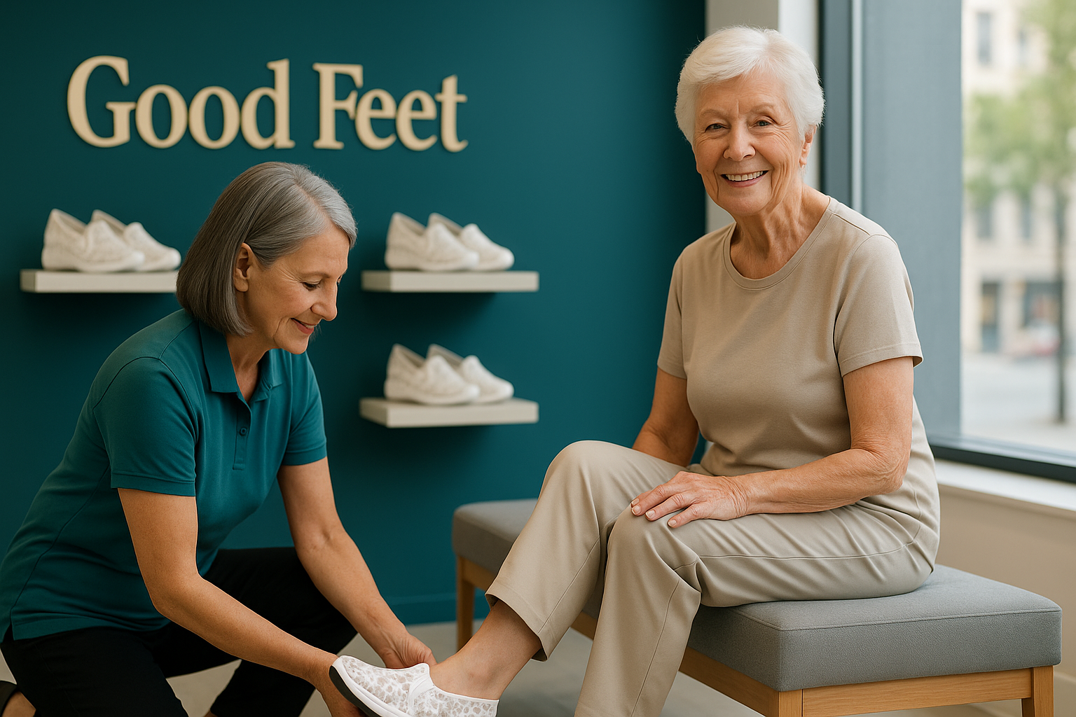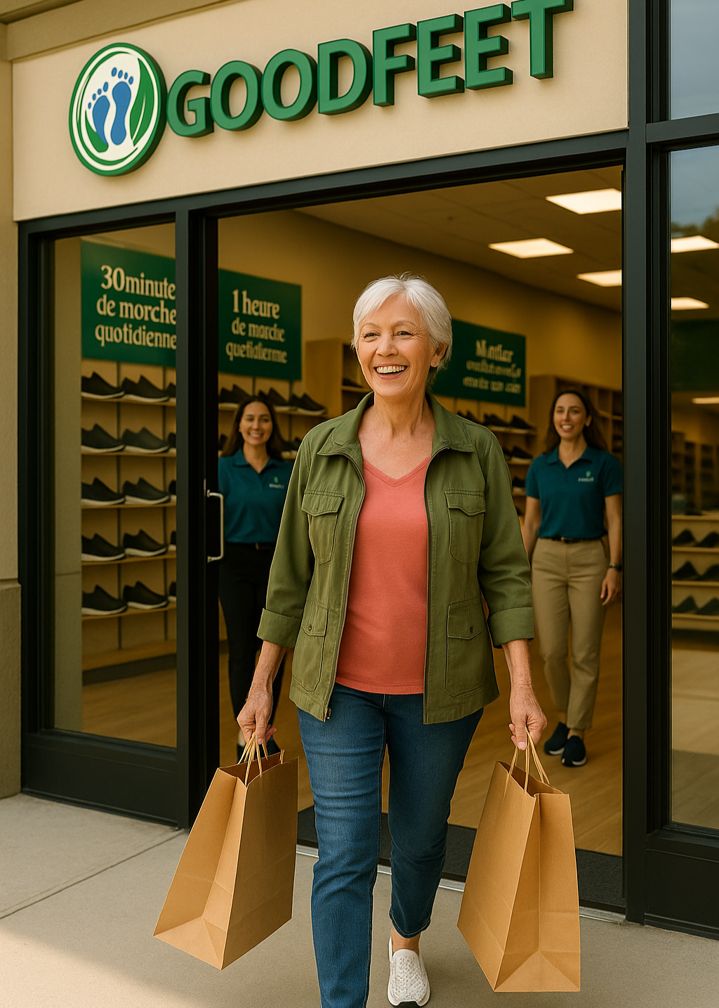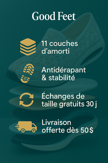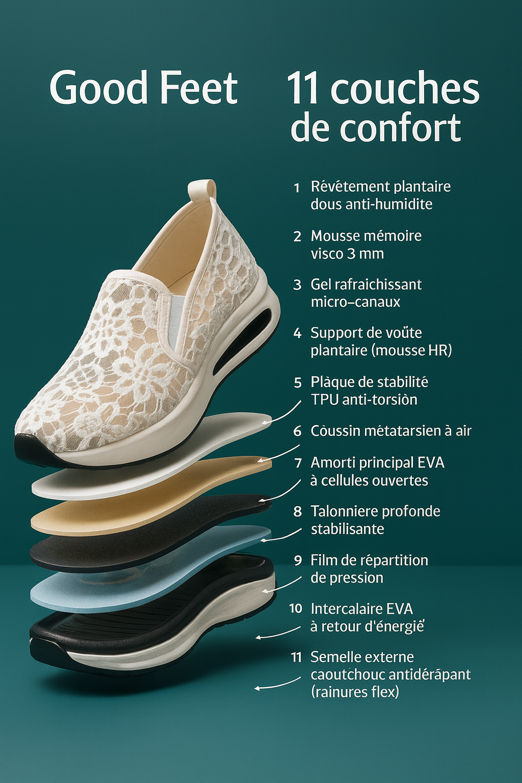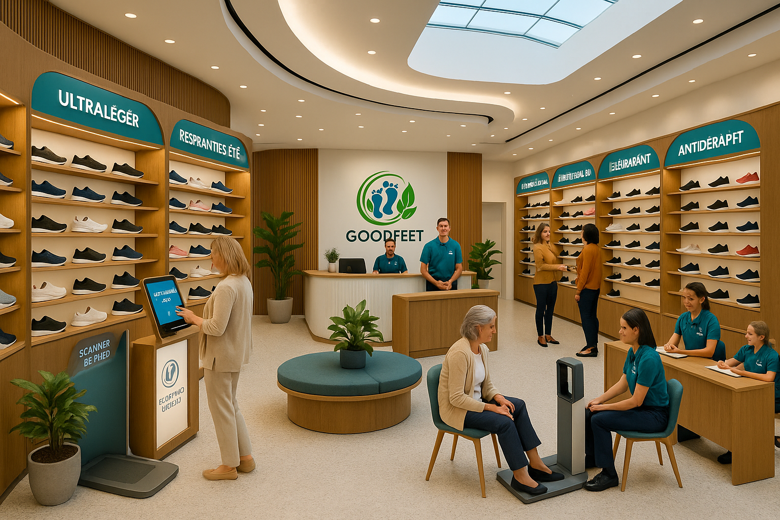 Bienvenue dans notre galerie : nos magasins, nos équipes, nos clientes et nos coachs en action. Les chaussures Good Feet ont été conçues avec un podologue pour offrir un confort réel au quotidien : 11 couches d’amorti, soutien de voûte, semelle antidérapante et respirabilité pour des pas plus légers et plus sûrs, de la ville aux sentiers.