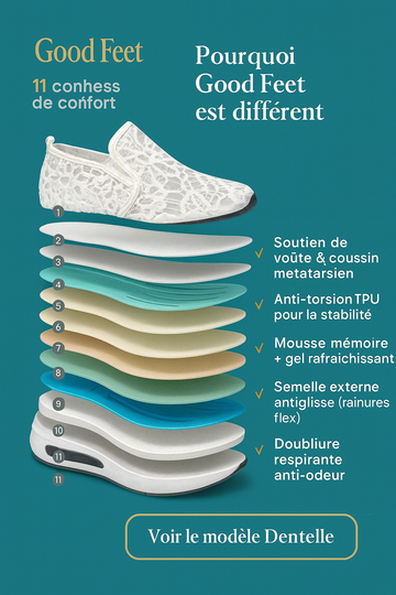 Chaque photo raconte la même histoire : plus d’aisance, moins de douleurs, l’envie de marcher un peu plus chaque jour. Laissez-vous inspirer, puis enfilez vos Good Feet… et redécouvrez le plaisir simple de la marche quotidienne.