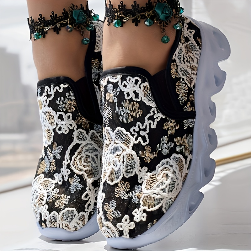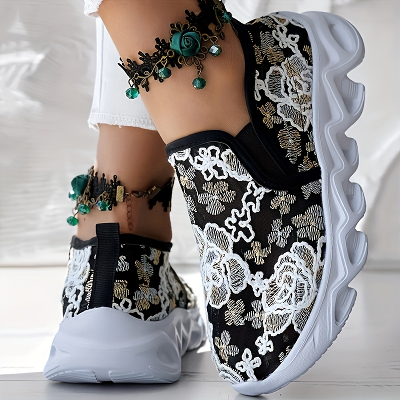 Les baskets femme brodées fleuries sont le choix parfait pour celles qui recherchent une touche d'originalité dans leur garde-robe. Avec leur style noir et blanc, mais également des accents verts frappants, ces chaussures ne passent pas inaperçues. En effet, la broderie florale ajoute une dimension supplémentaire, faisant de chaque paire une œuvre d'art qui reflète votre personnalité. Parce que le style ne doit jamais sacrifier le confort, ces baskets sont idéales pour un usage quotidien.